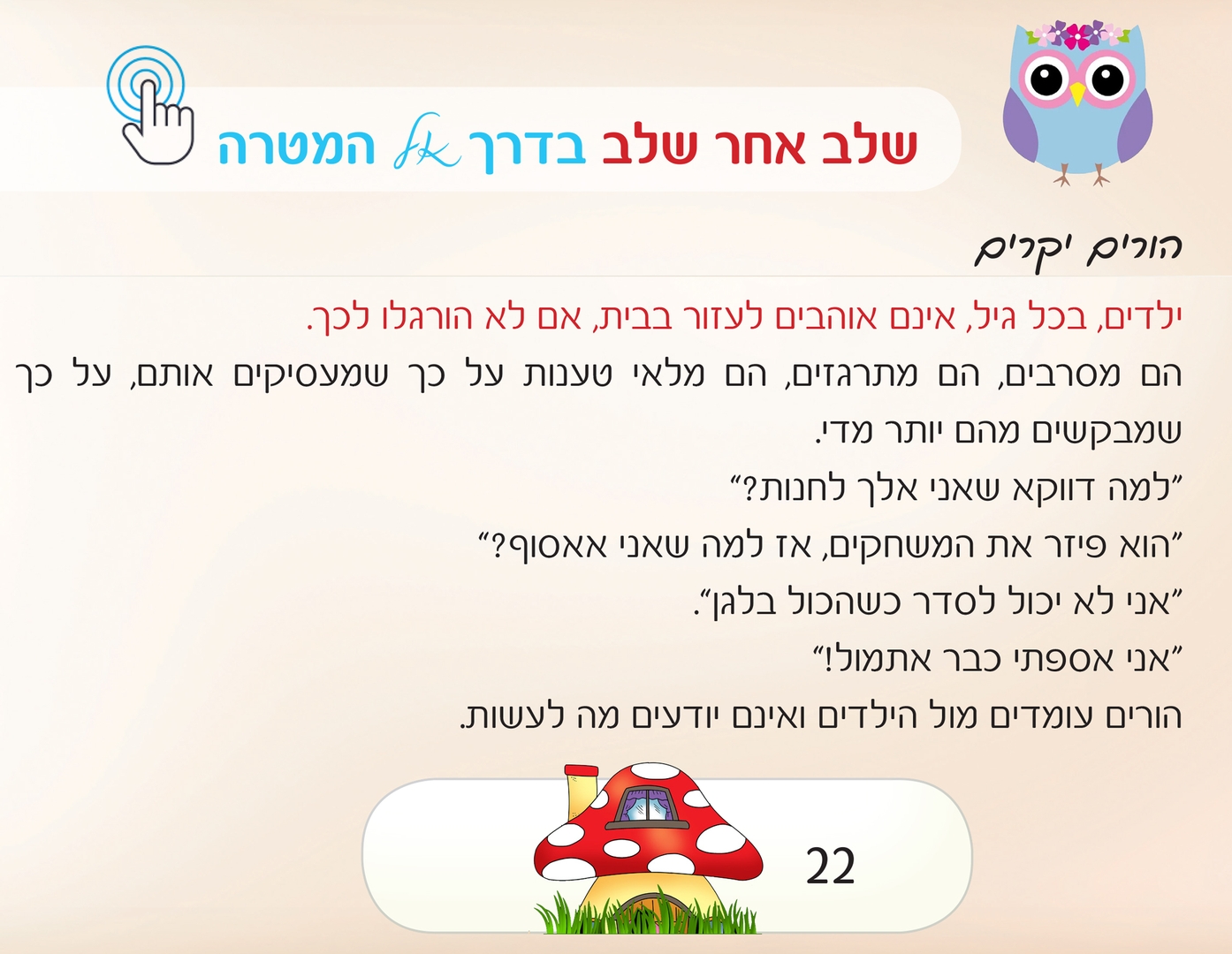 הנחייה מיוחדת להורים , איך להגיע לאותן תוצאות שבספר דרך שלבים ברורים.